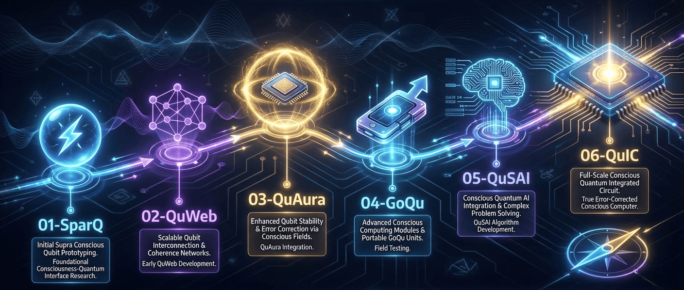 Our focus is to unlock the full potential of Quantum Computing using power of Consciousness, by developing Supra Conscious Qubit technology and developing a scalable conscious computer capable of providing true, complex, error-corrected solutions. We’re guided by a roadmap featuring milestones in both research and product development that will lead us toward top-quality Conscious Quantum computing hardware and software